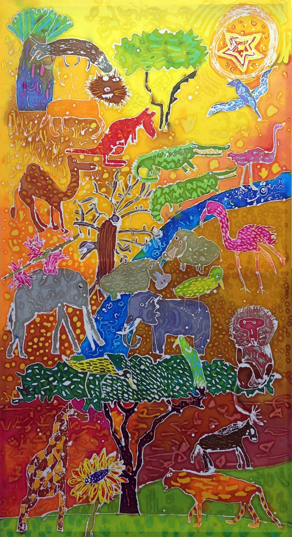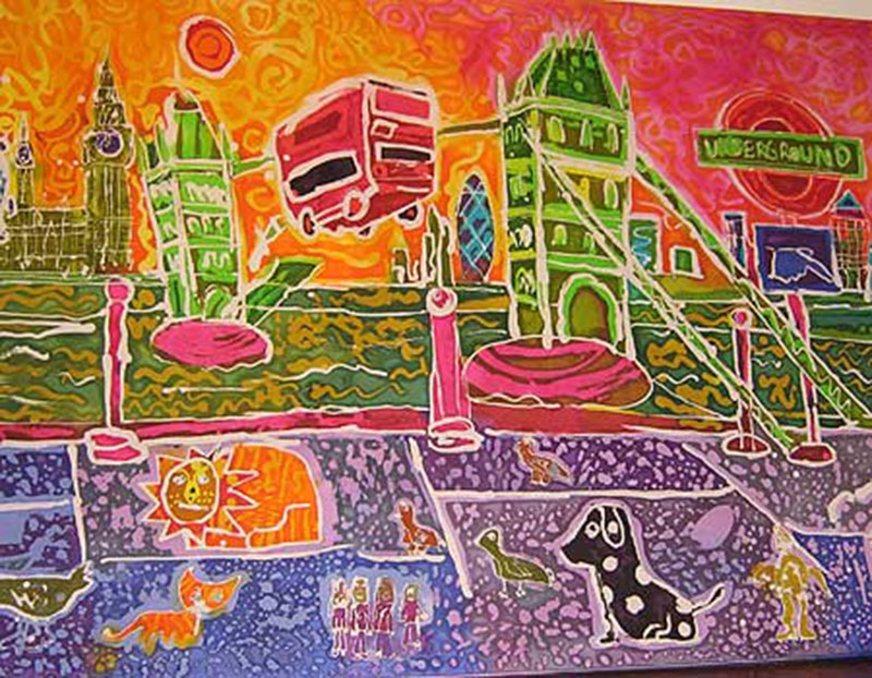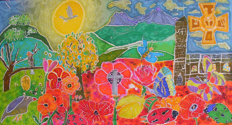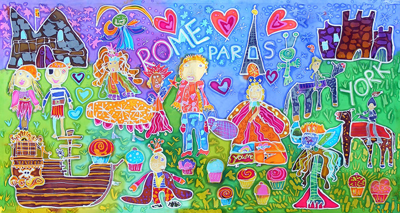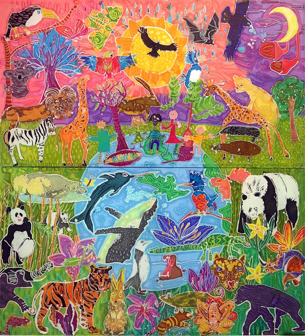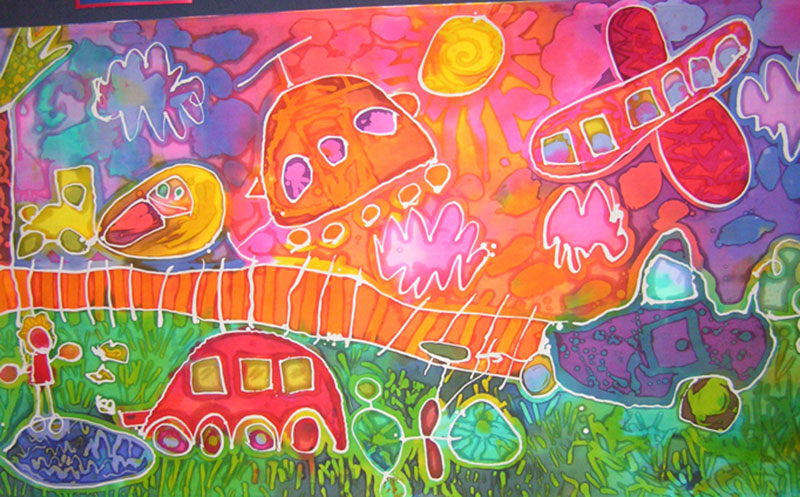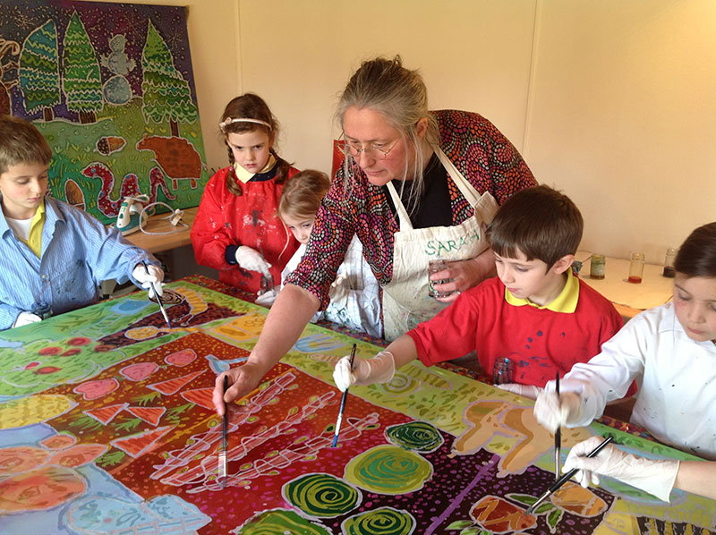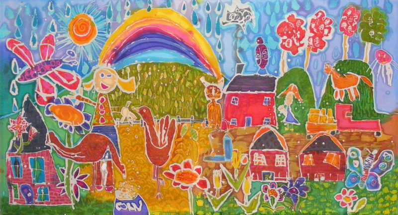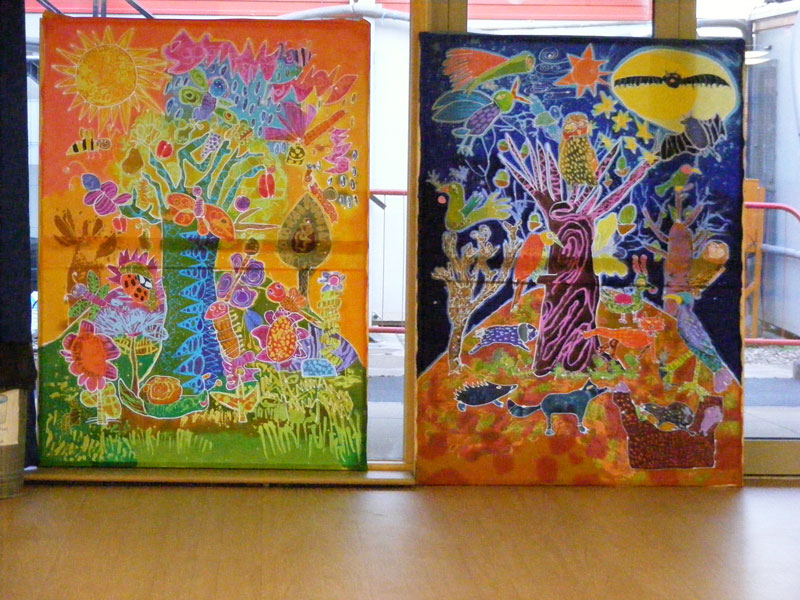 I also work in schools with children of all ages as part of the ‘eekbatik’ team which specialises in giant batiks for schools. Below are examples of giant batiks created and designed by primary school children.