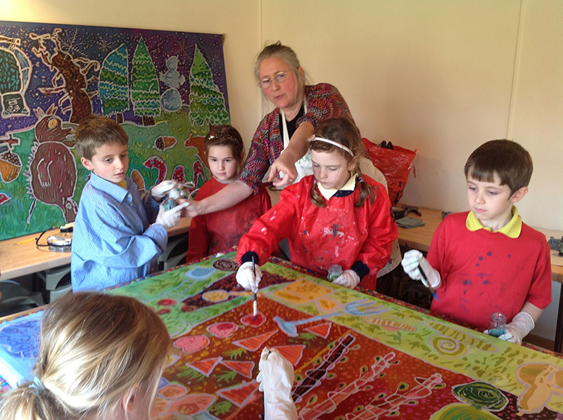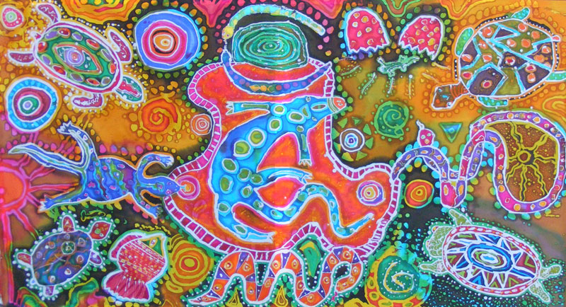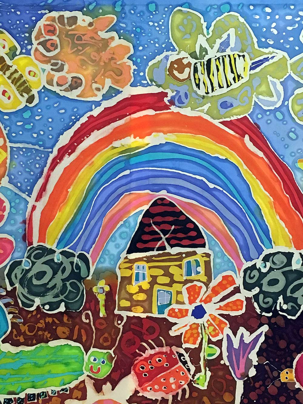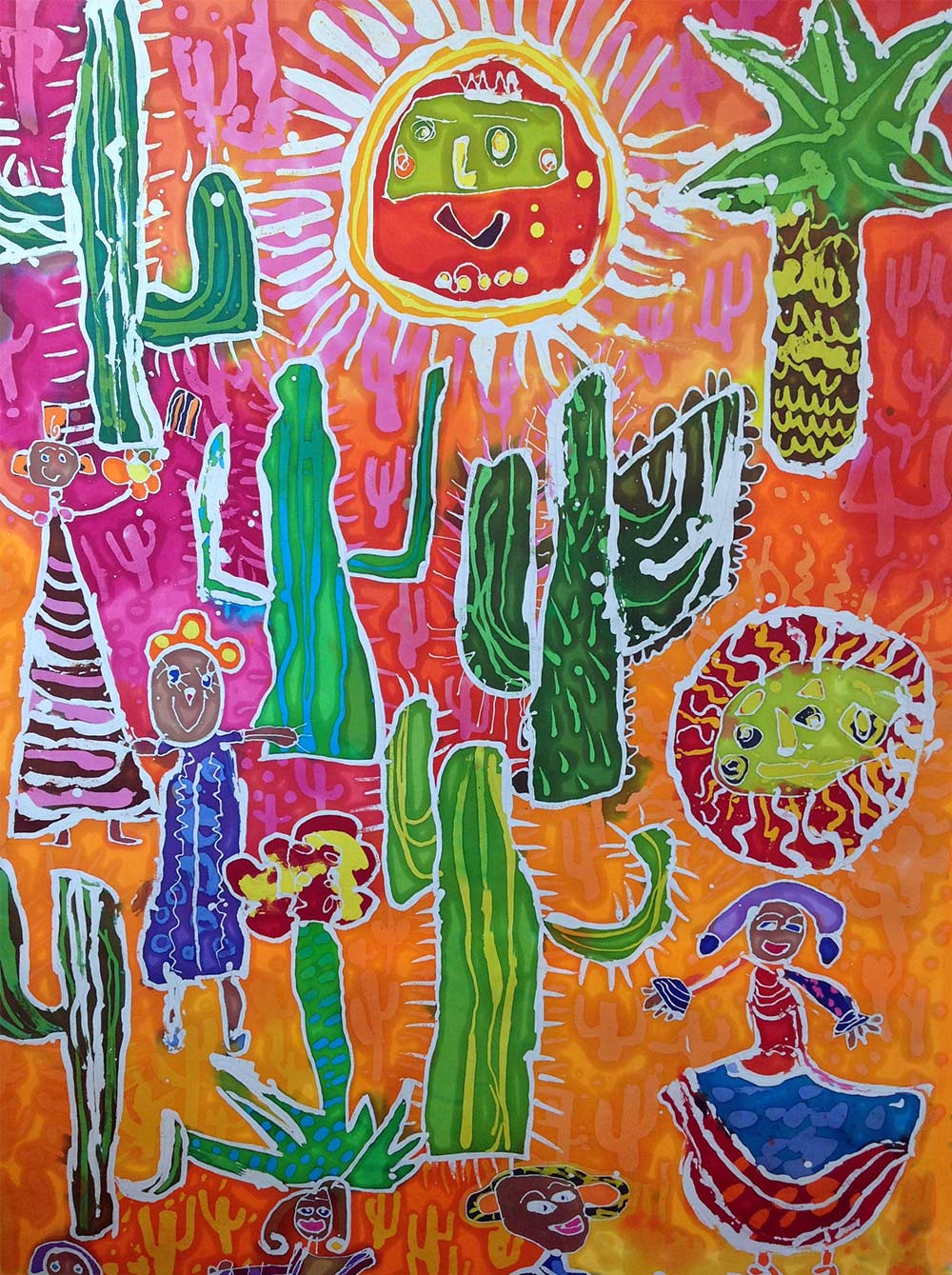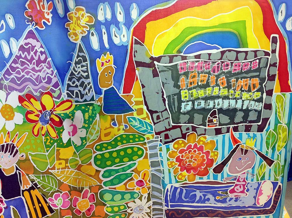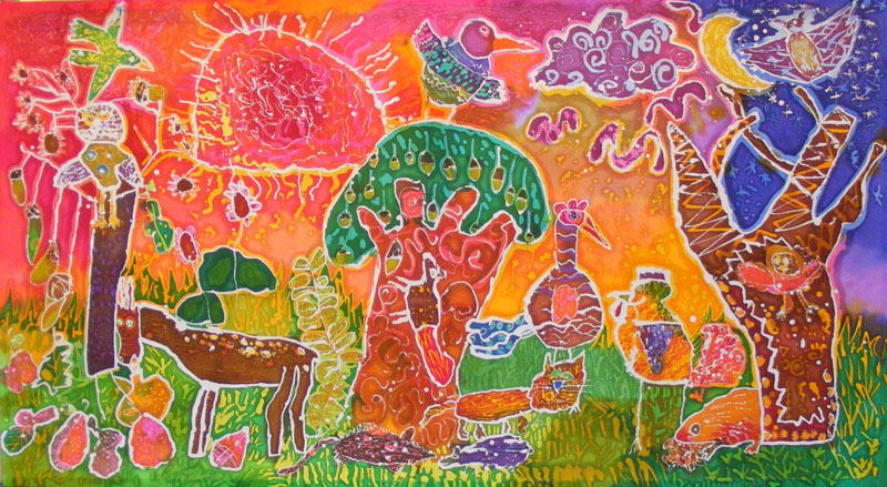 I also work in schools with children of all ages as part of the ‘eekbatik’ team which specialises in giant batiks for schools. Below are examples of giant batiks created and designed by primary school children.