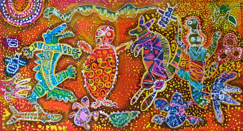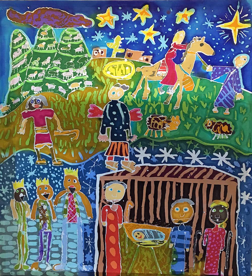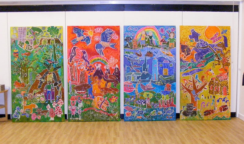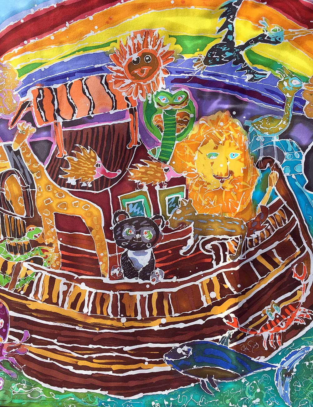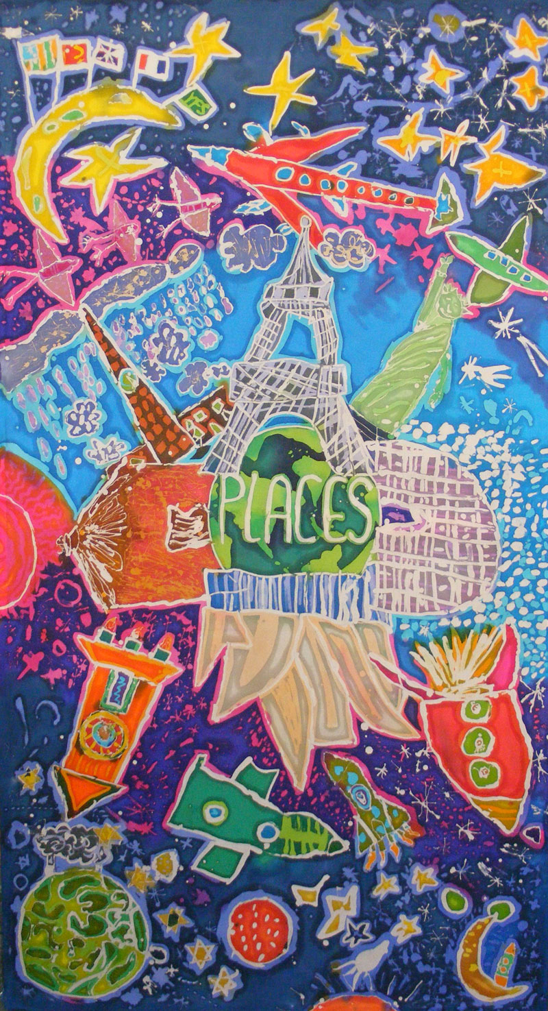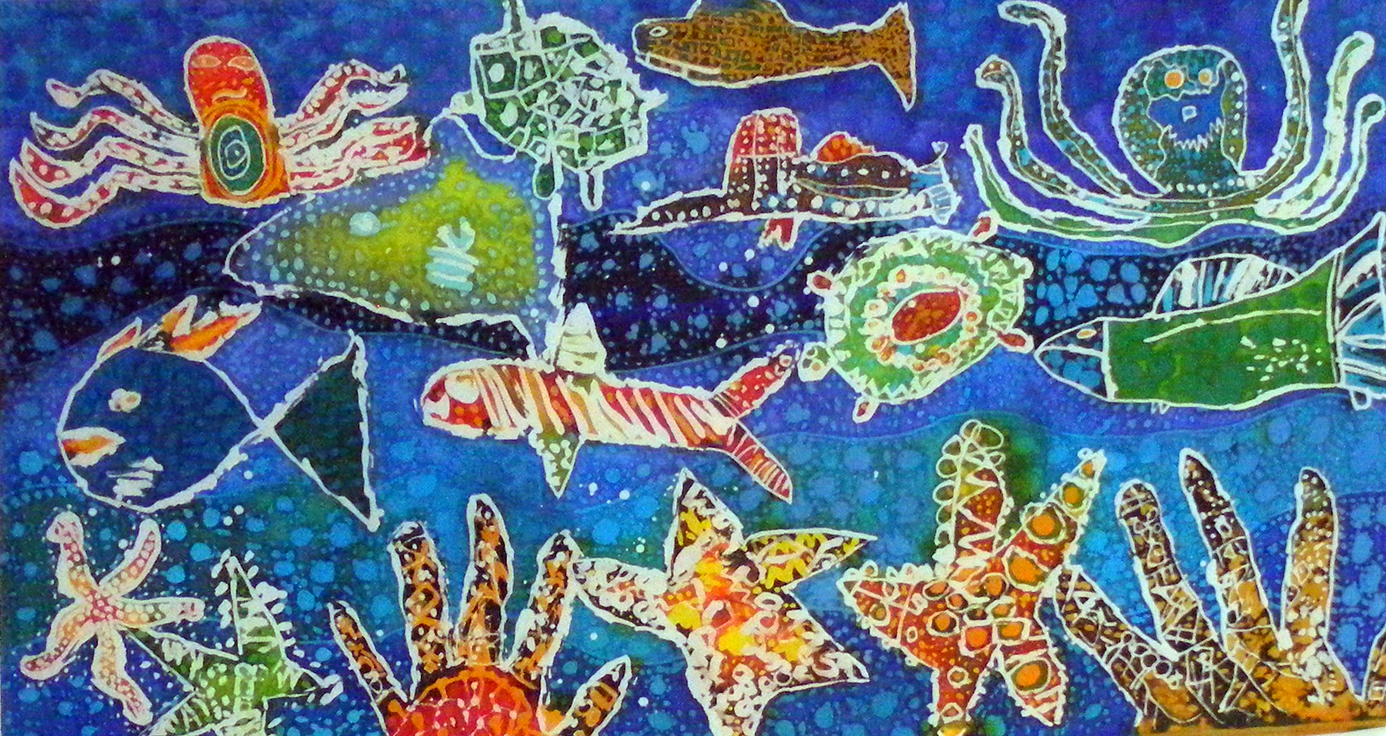I also work in schools with children of all ages as part of the ‘eekbatik’ team which specialises in giant batiks for schools. Below are examples of giant batiks created and designed by primary school children.